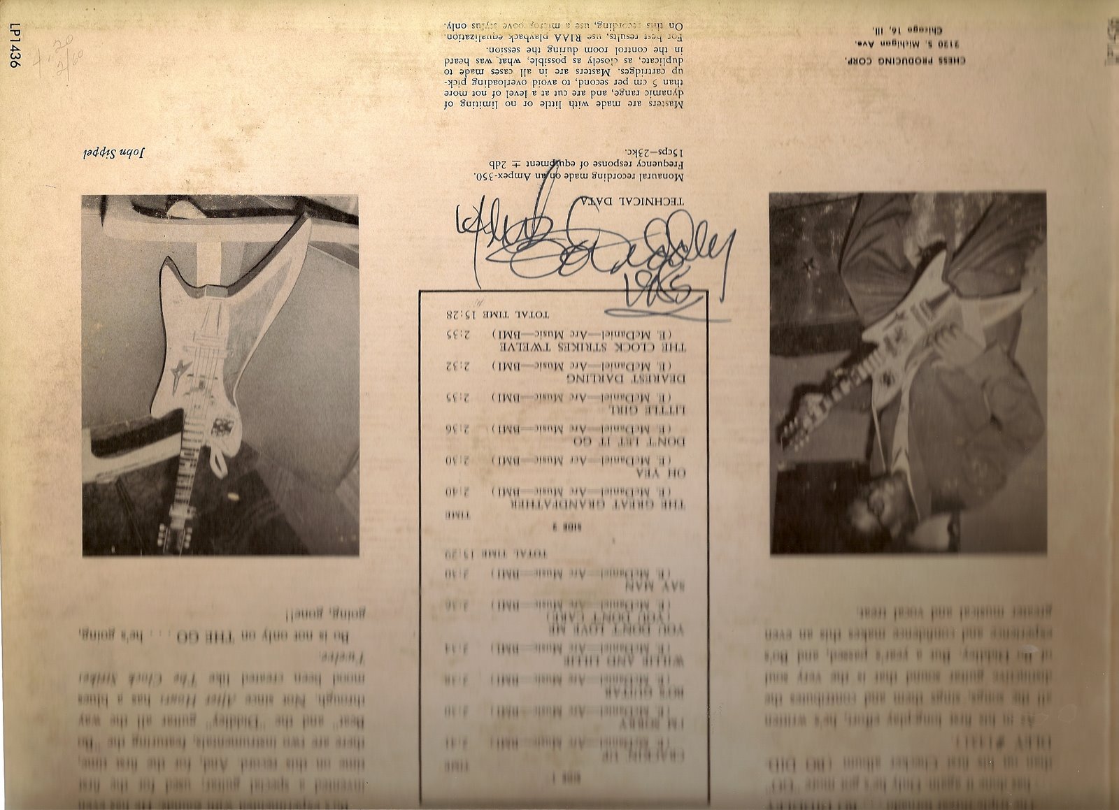 3) In 1985 we went down to Camden, N.J. to see Bo w/the Ben Vaughn Combo backing him up (they were perfect, right down to the plaid jackets, Bo hated them) so I brought my copy of Go Bo Diddley to get signed. While I was getting it autographed, Ben asked Bo about the verse in