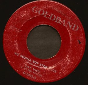 Since the subject sort of came up anyways, I must say rockabilly and Goldband Records are two things that go together well as exemplified by this beat up old slice of polystyrene. Ray Vict and his Bop Rockers– We Gonna Bop Stop Rock. I think this band’s gimmick was they tuned their instruments after the song, not before it like normal people do. Have you ever heard anything like this before? Or since? I think this one is from ’58 also.
