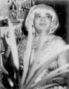 He didn’t. The original master take, with Marchan and the Clowns harmony lead vocal was shelved and a local white kid named Frankie Ford, who sounded a lot like Marchan, was brought in to overdub his voice on to the master. It was one of the biggest hits of 1958 and Ford, who I like a lot, has been able to make a comfortable living off of the tune ever since. The same trick was used on the flipside– Loberta (Bobby’s drag name) on which Ford’s voice was also dubbed, with the name changed to Roberta. It was a decent size hit on it’s own. It sported one of early rock’n’roll’s best lines– “I pawned my pistol/I pawned my watch and chain/I’d of pawned Roberta but Roberta can’t sign her name”. Huey Smith & the Clowns next disc was the below par Would You Believe I Have A Cold b/w Genevieve, they followed it up with the doo wop ballad Dearest Darling b/w Tub-Ur-Cu-Lucas and the Sinus Flu. Ace issued Huey Smith and the Clowns first LP– Having A Good Time, which sported a photo of only Huey Smith on the cover, a move that stuck in Bobby Marchan’s craw. After all, it was him onstage, touring his ass off, holding the group together, and singing lead on nearly all their tunes. Also, from here Huey Smith & the Clowns singles would take a noticeable dip in quality, as Smith spent more and more time working with Ford and other acts, novelty and dance craze tunes like Beatnik Blues and Pop-Eye became the order of the day, although their were two more shining moments, the first issued under Marchan’s name was Hush Your Mouth b/w Quit My Job, issued in 1960 it would be the last disc issued on Ace under Bobby’s own name. The other, issued in ’61, but I’ll bet was recorded much earlier was She Got Lowdown b/w Mean Mean Mean, the a-side being a tough, second line rocker of the highest caliber. For all his hard work leading and touring with Huey “Piano” Smith & The Clowns, Bobby Marchan felt that he was getting little name recognition out of the deal. Both LP’s and the EP issued by Ace featured only photos of Huey, and when Marchan approached Johnny Vincent about recording his rendition of There Is Something On Your Mind, Vincent vetoed the idea, since Big Jay McNeeley’s version with Little Sonny on vocals was already something of a hit on the Swingin’ label. Marchan began recording for Bobby Robinson (who had been in and out of New Orleans recording hits with Lee Dorsey), first releasing Snoopin’ and Accusin’ b/w This Is The Life on Fire in early ’59, a sort of cross between the Clowns and the Coasters styles, then the aforementioned There Is Something On Your Mind pts. 1 and pt 2, which he waxed in Chicago and leased to both Fire and Chess despite still being under contract to Johnny Vincent. When There Is Something On Your Mind hit the charts in 1960 the lawyers went to work. Chess never released their version, and Bobby Robinson bought off Johnny Vincent for a reported $12,500. The record stayed in the charts for eleven weeks, peaking at #1 R&B (#31 Pop) on Billboard’s charts. With There Is Something On Your Mind, Bobby Marchan would leave the Clowns style behind, the disc is a throwback to his drag days, an over the top bluesy ballad with a campy, spoken word breakdown in the middle (on the 45, the spoken part starts off Pt. 2, which would be the hit side that was played on radio). Bobby Marchan would record for Robinson’s Fire label for the next two years including, recording an excellent proto-soul dance number The Bootie Green b/w It Hurts Me To My Heart with Allen Tousaint in support, and finish up his relationship with Bobby Robinson with a version of Guitar Slim’s The Things I Used To Do pt. 1 and pt. 2, done in the same histrionic style of There Is Something On Your Mind, it would be released on the Sphere Sound label, Fire having gone into receivership earlier that year. Excellent though it was, Robinson was in poor financial shape and had no money to promote the disc, and soon Marchan had moved on. He would record two for excellent singles for Stax in ’64 — What Can I Do and You Won’t Do Right, one for Cameo (Shake Your Tambourine, a soul shaker and a minor hit in ’66), and then Dial where he cut several singles including the stomping Get Down and Get With It which would be covered by Little Richard and later Slade (the writer’s royalties he made off the Slade hit would be the most money he’d ever earned off one of his records). He toured heavily in the 60’s, working with everyone from Otis Redding to James Brown, but by the early 70’s demand had fallen off and he went back to working drag shows, becoming the regular emcee at Club Alhambra in New Orleans, then hosting a live, riotous version of the Gong Show at the Club 2400, appearing in a blond wig and tight, sequined cocktail dress. He kept his hand in the music biz, and in a way that has never been made quite clear was one of the original founders of the Cash Money label, the New Orleans hip hop (or as they call it down there, bounce) label that produced stars like Juvenile and Lil Wayne. He also performed at the New Orleans Jazz and Heritage Festival, back when local New Orleans legends were more welcome than Phish and Bon Jovi who seem to have taken the event over (which is why Ira Pandos and his Mystical Knights of The Mau Mau began the Ponderosa Stomp, going on this weekend down in New Orleans). By the late 90’s his health began failing. He had to have a kidney removed (why isn’t that kidney on display at the rock’n’roll hall of fame?), and then was then struck down by cancer, dying on December 5, 1999. The drag tradition in R&B continues on to this day in performers like New Orleans rapper Katie Red, but the real history of these “freakish men” has yet to be fully explored, and has never really been acknowledged. Of the many untold secrets that still hide up the rumbled skirt of R&B and rock’n’roll history, one suprise you will find is a black coc