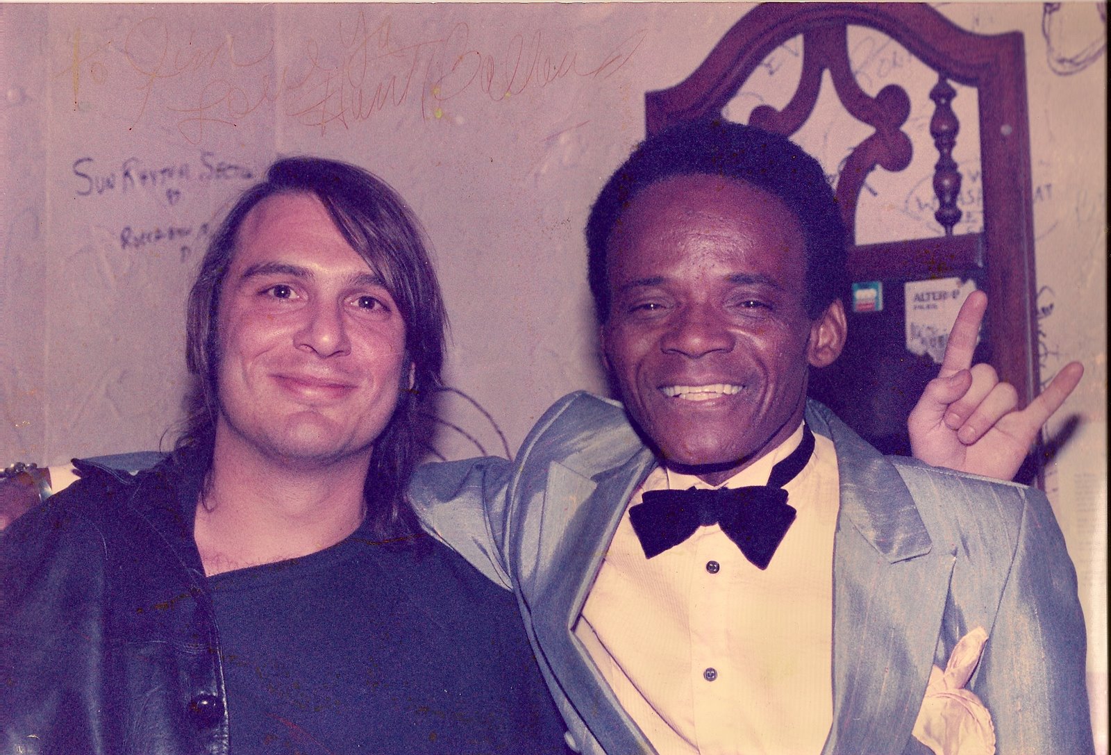 Rare discs in hands, we headed for Tramps, and there he was: the legend, the man– Esquerita himself! His hair was short, and he looked like he’d ridden some hard miles, but it was he, the guy who made those insane records way back when. There must have been a dozen people in the audience that first night, but he was amazed and thrilled that anyone, never mind bunch of white kids who were either in diapers or hadn’t been born yet, knew of his great achievements at Capitol Records. He signed our discs, had his photo taken with us, and he was our pal— our very own pet legend.