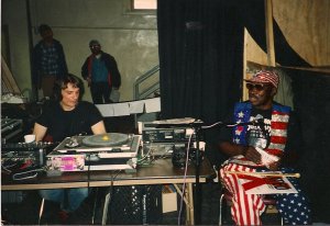 Meeting of the mindless (left to right) Me, Billy Miller, Julie Whitney, Esquerita, Todd Abramson, Miriam Linna, Tramps, 1981.
