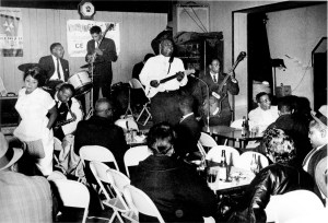 Breston, with a #1 hit under his own name briefly went solo (he’s return a few years later and a few dollars poorer) while Ike left Phillips and stuck up a partnership with the Bihari Brothers who ran the RPM/Modern/Meteor family of labels. Ike would record and play on sides by Howlin’ Wolf, B.B. King, Joe Hill Louis, and tons of others, driving around the south with Joe Bihari, recording musicians in juke joints and make shift studios. The U.K. Ace label has issued an incredible CD of some of the more interesting and obscure sides (and out takes) called The Travelin’ Record Man which is well worth buying. Ike also cut his own band for RPM and even had an LP issued (Ike Rocks The Blues on Crown) which culls together the best of his guitar instrumentals from this period (Ike, having switched to guitar after “Rocket 88”, figuring it would be harder to over look him if he was standing up). Here’s one of my favorites from that period: “Bayou Rock” (as it was known on the LP aka “Cubano Getaway” which is what it was called on the 78). The Bihari’s were cheap fucks who didn’t pay much so Ike returned to Sun on several occasions to record sides that Sam Phillips never bothered to release. Some of these are incredible but the world wouldn’t hear them until England’s Charley label started digging through the Sun vaults in the late 70’s. Here’s “I’m Gonna Forget About You” a tune Ike would recut several years later in Chicago for the Cobra label. One can hear his already perfected “piss shiver” (as Roscoe dubbed it) guitar style which involved pulling the whammy bar on his Stratocaster hard enough to nearly yank the bridge off the body. While we’re at it, here’s an oddball tune that was left sitting in Sun’s storage room, it’s Ike and first wife Bonnie Turner duetting on a number called “Down In The Congo“. Memphis soon proved too small for a man of Ike’s ambition and his next stop was St. Louis. In St. Louis Ike cut sides for labels small and smaller, appeared on local TV (where the above clip came from), and