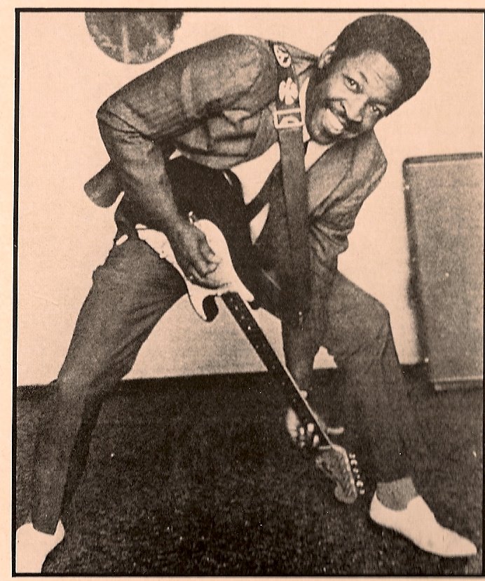 He also recorded solo sides, the next, which appeared the ridiculously obscure Trilyte label was a brilliant instrumental called The Thing b/w Weekly Blues in 1955. Another appeared in 1957 on Bob Geddins’ Jumping label — Cockroach Run, a killer guitar romp that was so low budget it didn’t even have a b-side (a goofy comedy break in called The Trial was used as the flip). Don Robey’s Peacock label in Houston recorded him as a leader after a McCracklin session with the blazing Jumpin’ In The Heart Of Town and Standing In The Doorway Crying but these, probably his finest solo recordings were left in the vault to rot until the U.K. Ace label salvaged them and released them in 1987 on the LP Bay Area Blues Blasters (Ace 224) which featured a photo of The Thing himself wielding a Stratocaster as if it were a battle axe.
